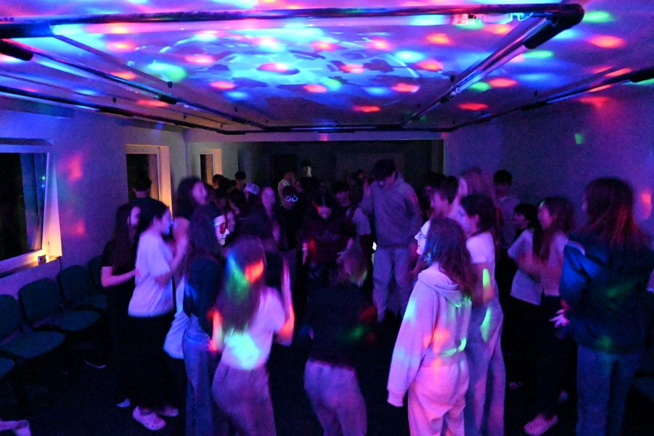 Večery patřily přednáškám o bezpečnosti na horách a lyžařském vybavení, promítání filmu a diskotékám. Nenechali jsme si ujít ani hokejové utkání národního týmu na olympijských hrách proti Kanadě. Během odpočinkového dne se žáci vydali na procházku do Pece pod Sněžkou. Odpolední program pak patřil zábavě: soutěže a hry v hotelovém bazénu, virtuální realita, řešení imaginárního minového pole nebo turnaj ve hře Dobble. O dobrou atmosféru tak nebyla nouze ani mimo svah.