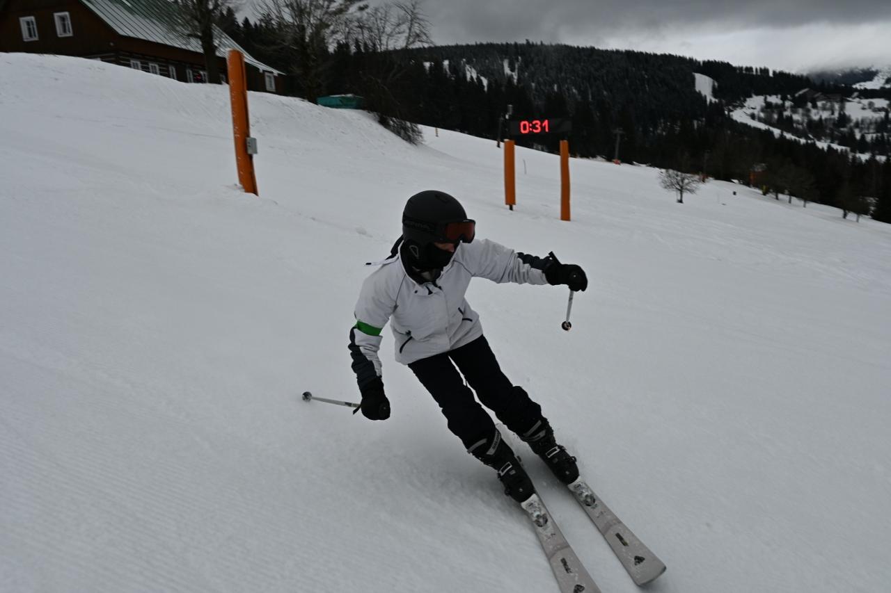 Ačkoliv nám tentokrát počasí nepřálo, dobrou náladu to nikomu nezkazilo. Většinu týdne provázela výcvik mlha a jedno dopoledne prakticky pršelo. Přesto zůstávaly sněhové podmínky velmi dobré.